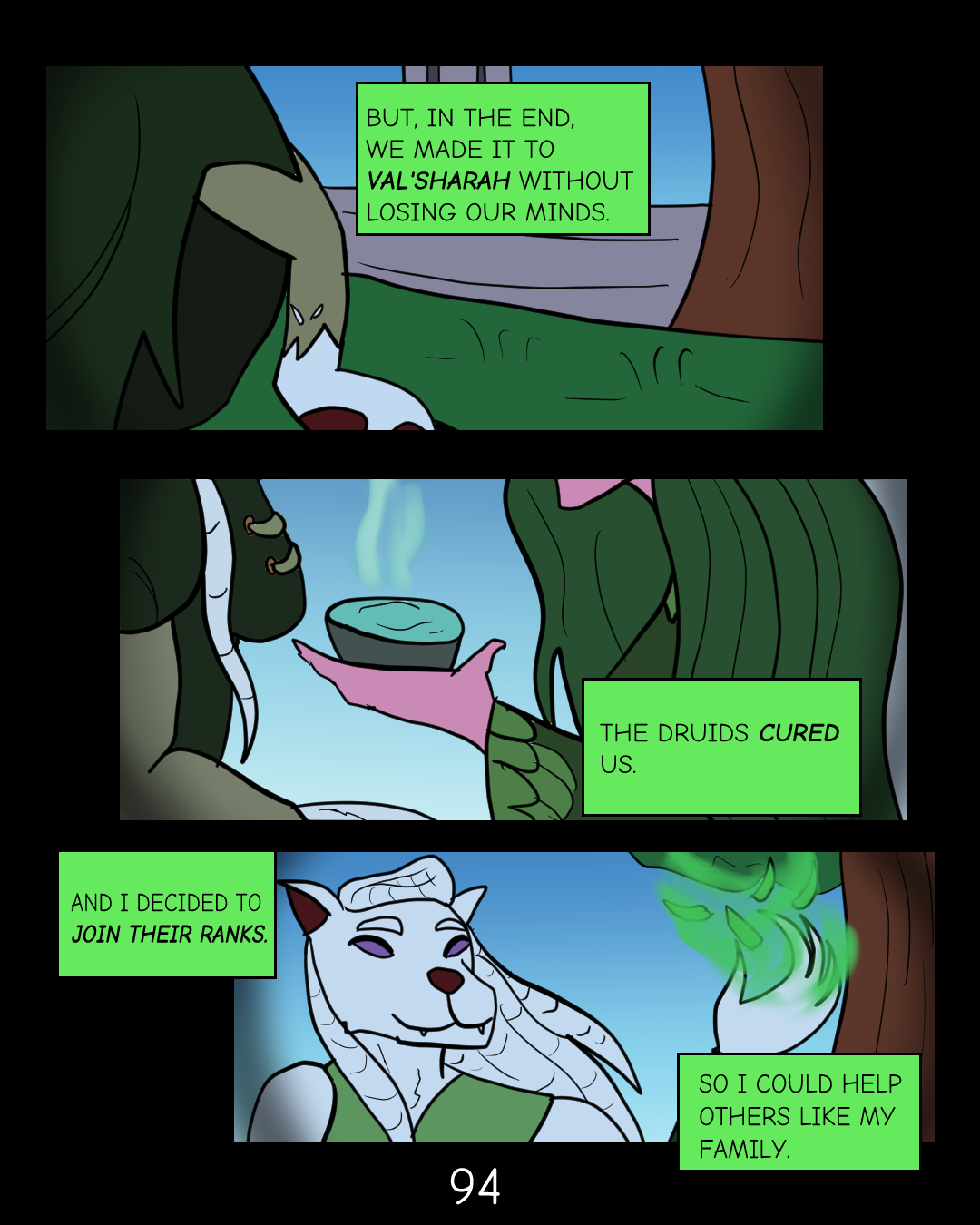 Fel and Blades: Pages 94 & 95 By ShadezDecember 8, 2023August 28, 2025Fel and Blades Thanks for reading! Come back every Friday for updates! For more information, check out my socials! Share this:TweetMoreShare on TumblrLike this:Like Loading... Related
