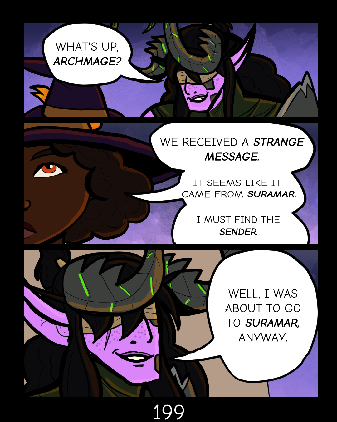 July 18, 2025August 28, 2025Fel and Blades Fel and Blades: Pages 199-201 Thanks for reading! Come back next Friday to read more! Can’t wait? Consider joining my Patreon to read two weeks ahead!