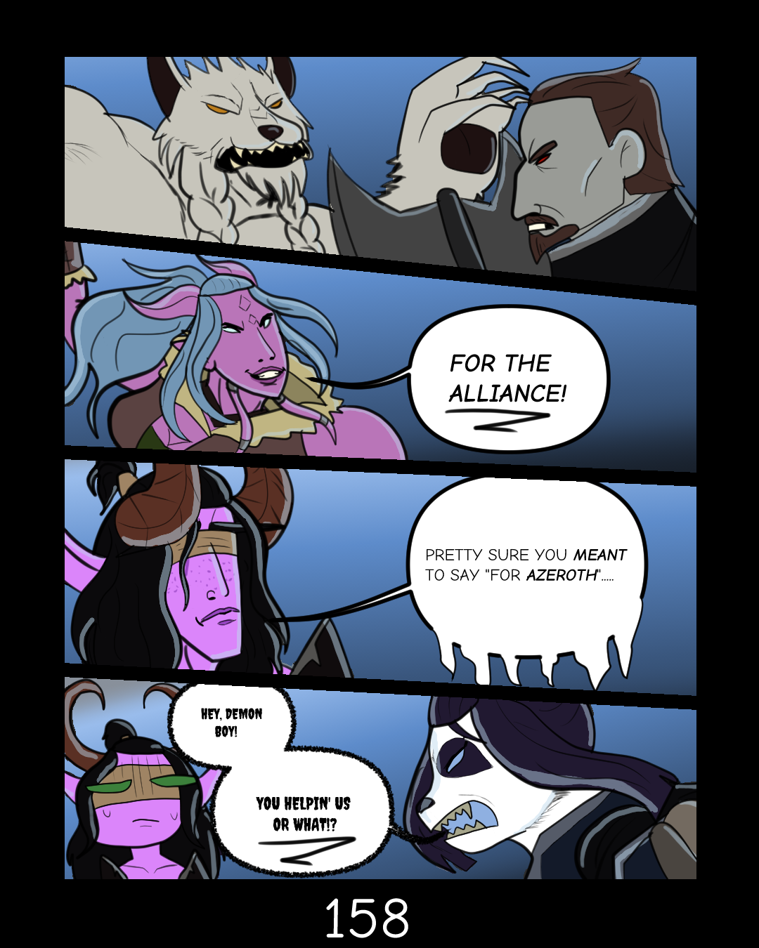 July 19, 2024August 28, 2025Fel and Blades Fel and Blades: Pages 158 & 159 Thanks for reading! Come back every Friday for updates! For more information, check out my socials!